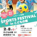 - 【貸館】SPORTS FESTIVAL日時:2月8日(日)①10時30分から12時30分まで ②… 続きを読む: 【貸館】SPORTS FESTIVAL
