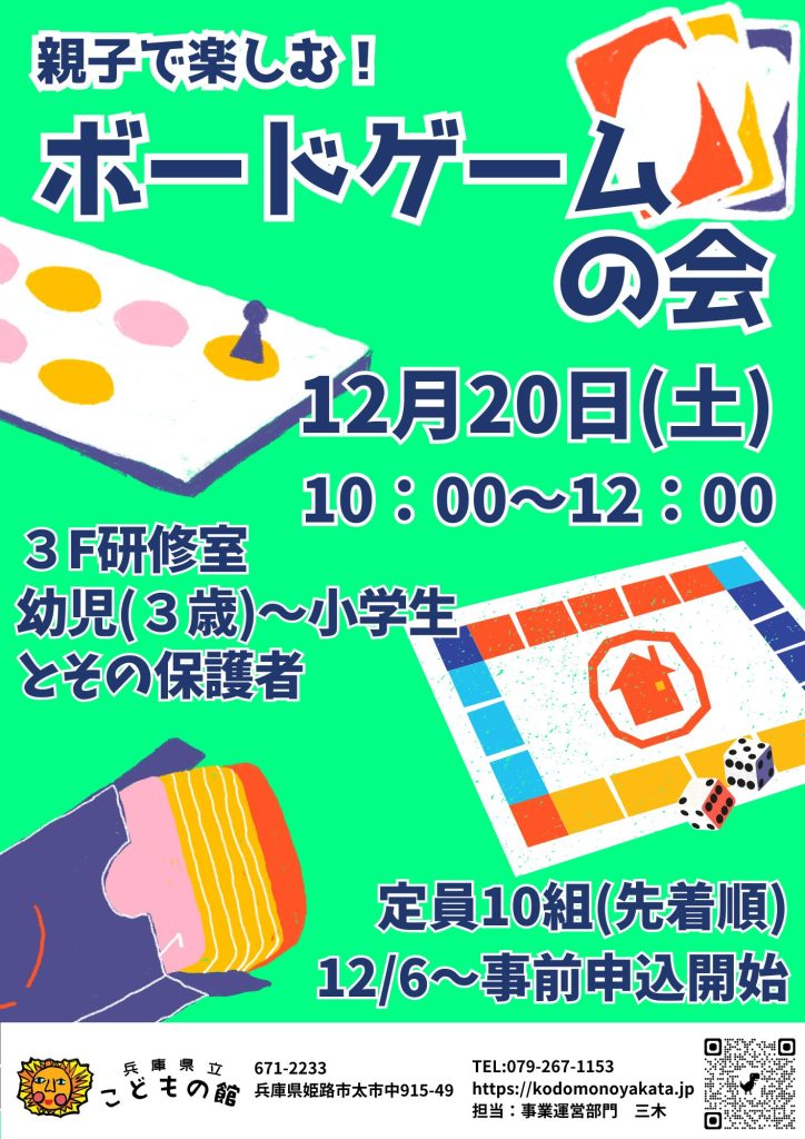 「親子で楽しむ!ボードゲームの会」を開催します。