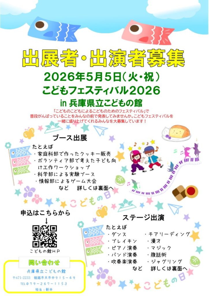 普段がんばっていることをみんなの前で発表してみませんか。こどもフェスティバルを一緒に盛り上げてくれるみんなを大募集しています!