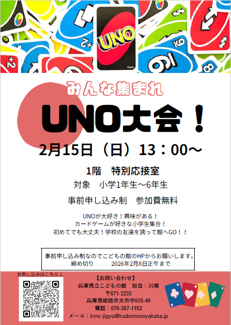 UNOがだいすきな小学生集まれ!UNOを遊んでみたい子はぜひ参加してください!!