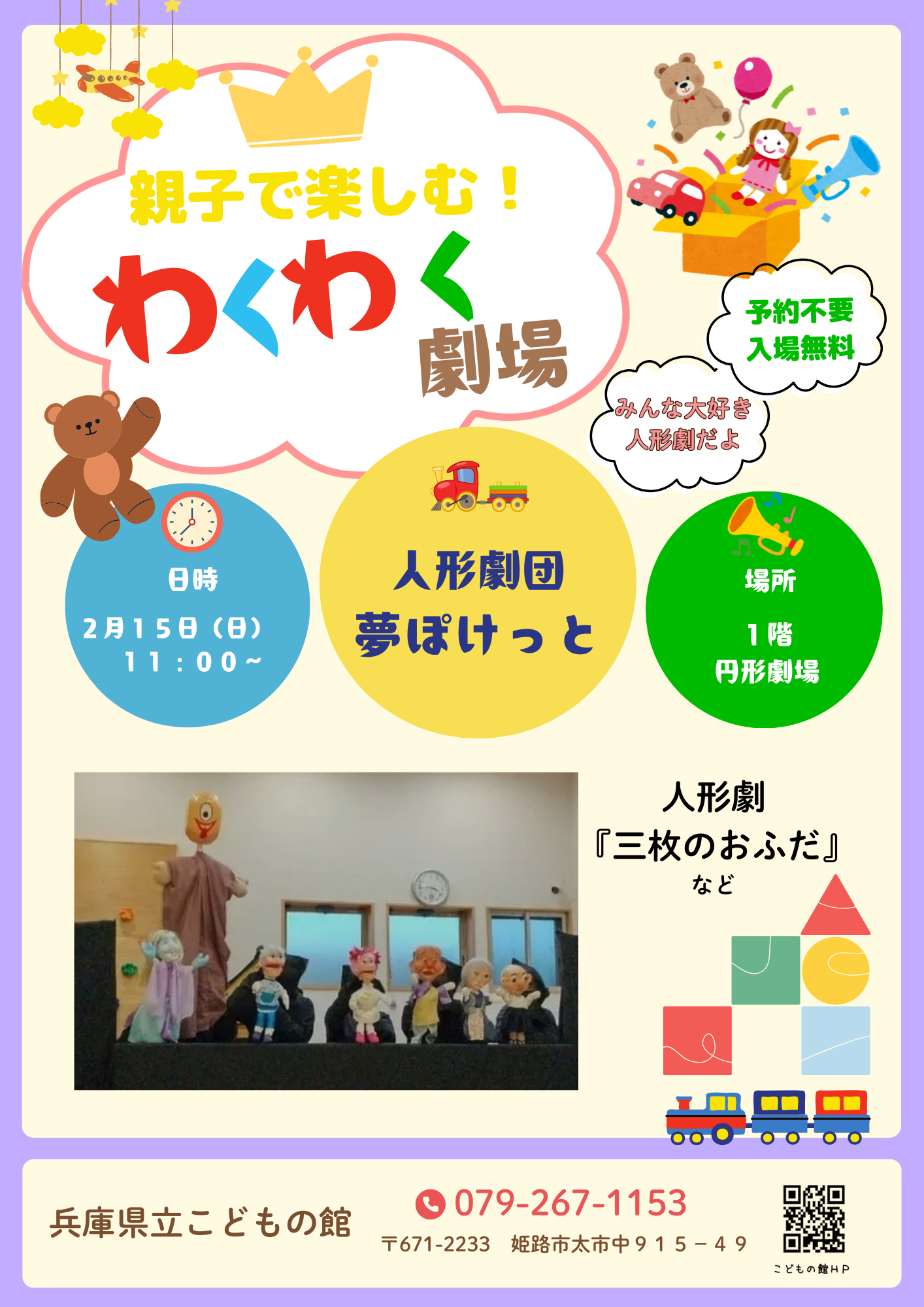 2月15日(日)11時~ 「人形劇団夢ぽけっと」がやってくる!