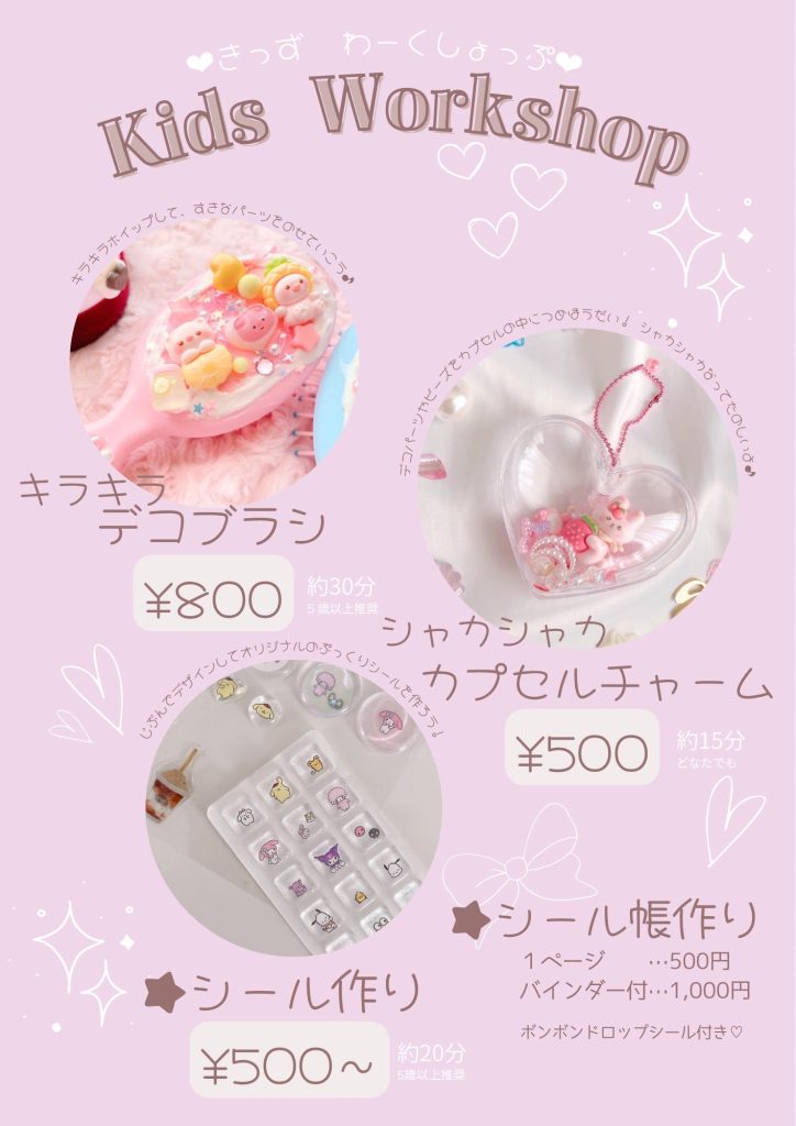 わくわくワークショップ3月 2026年3月5日 最終更新日時 : 2026年3月5日 subsite 3月15日(日)3階研修室わくわくワークショップを開催! ☆Riente ☆チェロアッズロ宝石石鹸教室 ☆昭和屋 きのこリウム 1個500円 15分程度で完成 ☆Lee&Lei♡