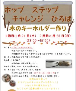 子ども達が自分で考え行動することを大切に、社会で必要な「生きる力」を育む様々な体験活動を行います。 1月は「木のキーホルダー作り」です! 参加費は1名500円で、小学生が対象です。 皆様のご参加お待ちしております!! 木 […]