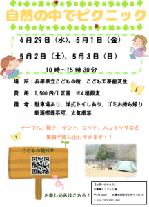 GWに今年も実施します!! こども工房周辺で春の自然を感じながらピクニックをしませんか? テーブル、椅子、テント、ハンモックなどの無料貸し出しもあります!! 1日先着4組限定となっておりますのでご参加希望の方はお早めにお […]
