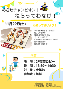 令和7年度新イベント! 毎月1回 展望ロビーにて 13:30から受付開始! 11月の、めざせチャンピオンは、ねらってわなげです。 日にち:11月29日(土) 場所:2F展望ロビー 時間:13:30~14:30 対象:全年 […]